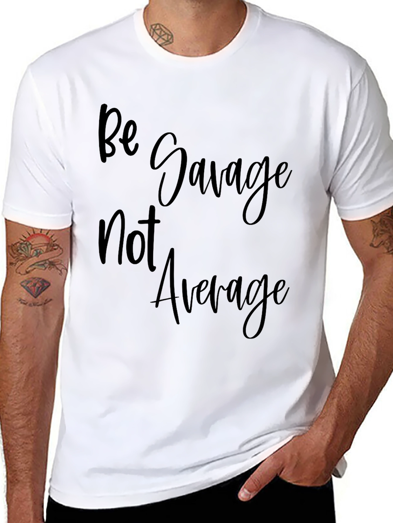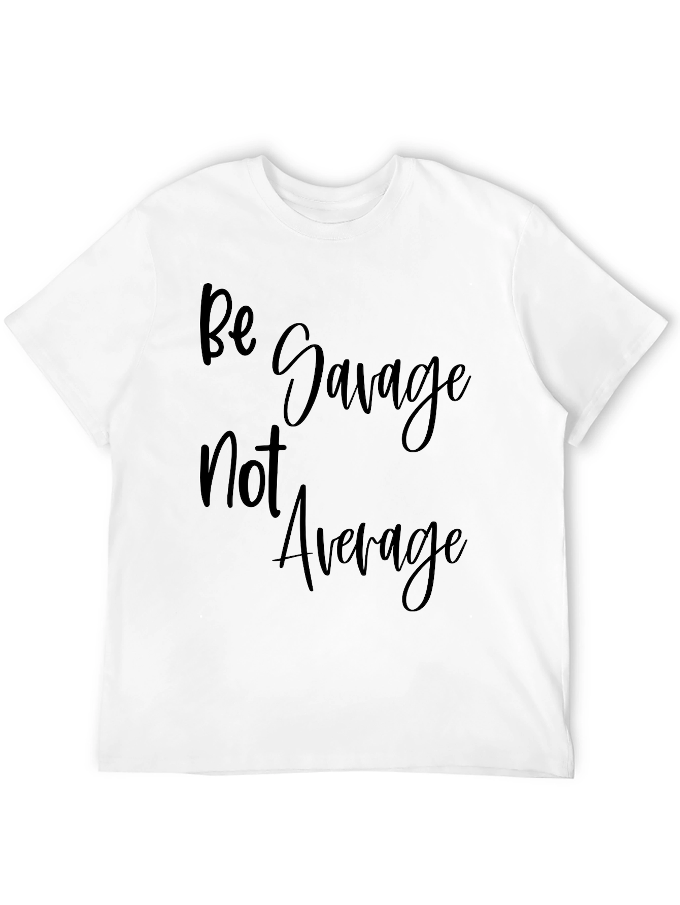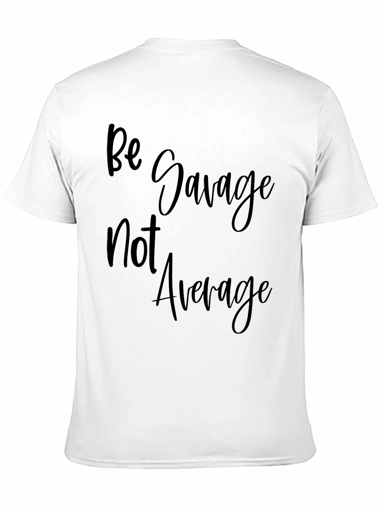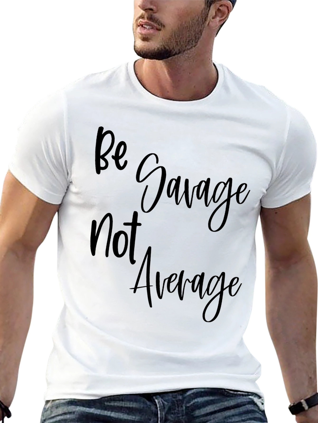 Show off your fierce attitude with this stylish black graphic tee. The shirt features a bold "Be Savage Not Average" print in a sleek, modern font, making it a perfect statement piece. Crafted from a soft, comfortable fabric, this t-shirt offers a relaxed fit suitable for everyday wear. Pair it with your favorite jeans or shorts for a casual yet impactful look. Ideal for those who embrace individuality and aren't afraid to stand out. Upgrade your wardrobe with this must-have tee and unleash your inner savage!