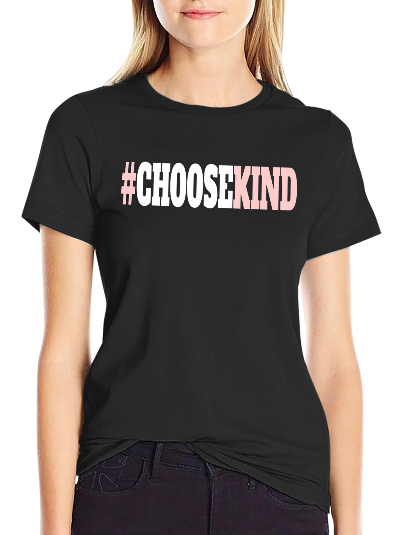 Show your commitment to kindness with this stylish black t-shirt. Featuring the hashtag '#ChooseKind' in a bold, eye-catching font, this tee is a simple yet powerful way to promote positivity and empathy. The classic crew neck and comfortable fit make it perfect for everyday wear. Wear it to school, work, or casual outings, and inspire others to choose kindness in their interactions. It's more than just a shirt; it's a statement. Perfect for anyone who values compassion and wants to make a difference.