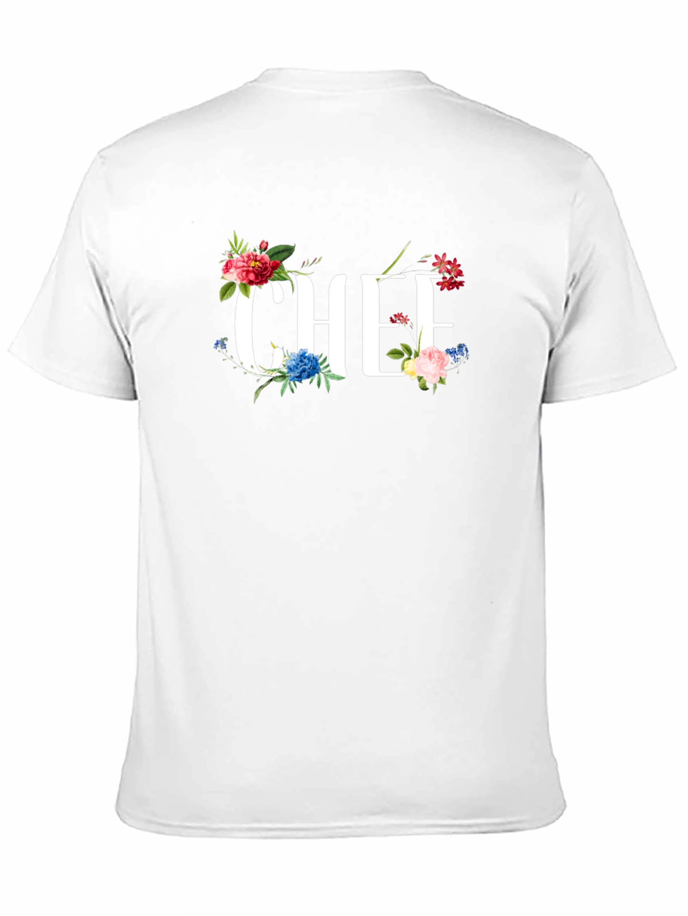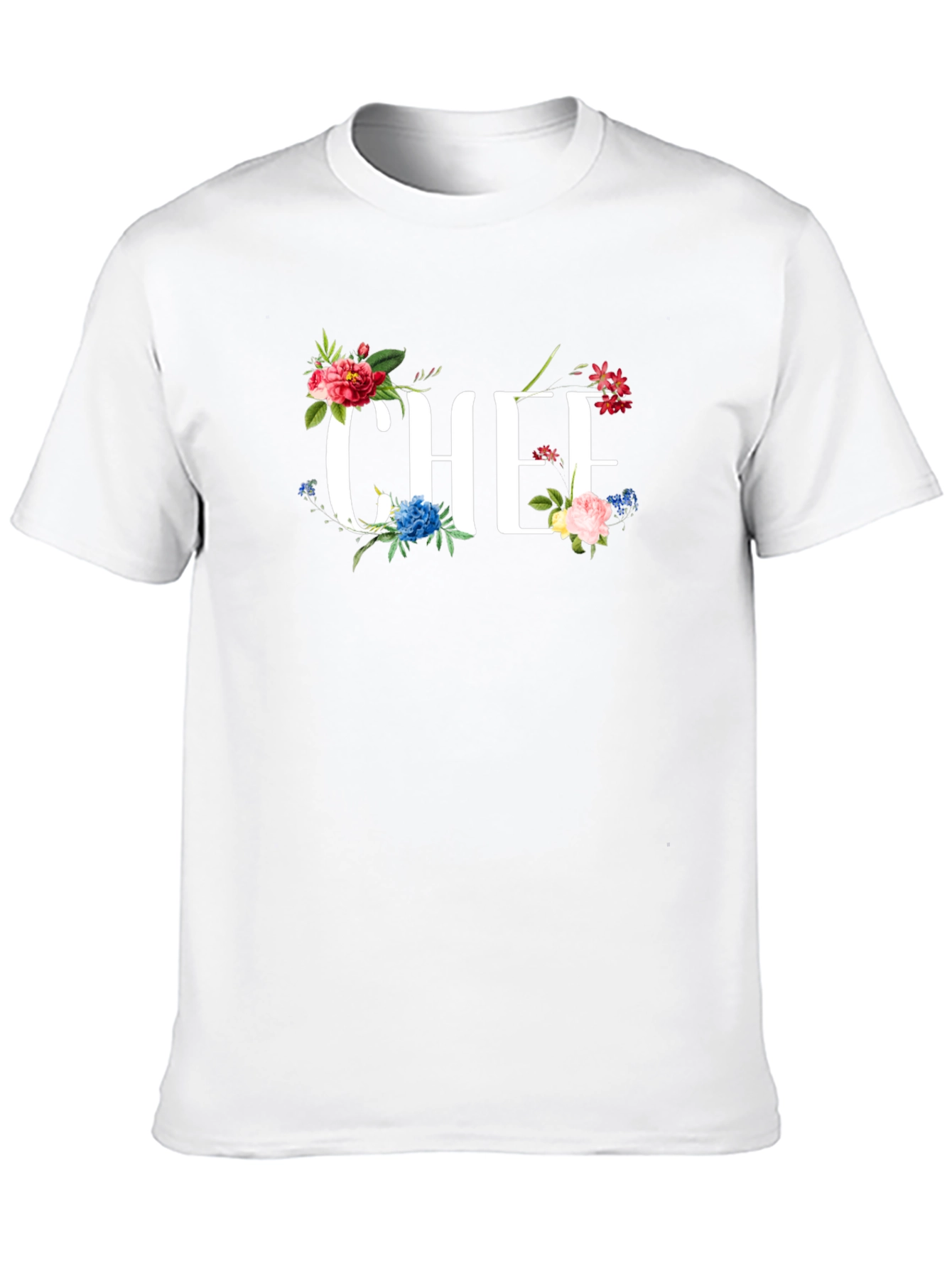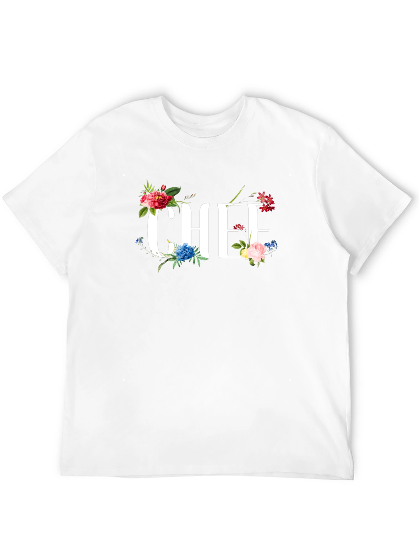 Show off your culinary passion with this stylish black t-shirt! The eye-catching "CHEF" graphic is beautifully adorned with vibrant floral accents, adding a touch of elegance to your kitchen attire. Made from a comfortable fabric, this t-shirt is perfect for everyday wear in the kitchen or casual outings. Express your love for cooking with this unique floral chef t-shirt. Makes a great gift for chefs, cooks, and food enthusiasts! Stand out while you cook with this great looking chef t-shirt.