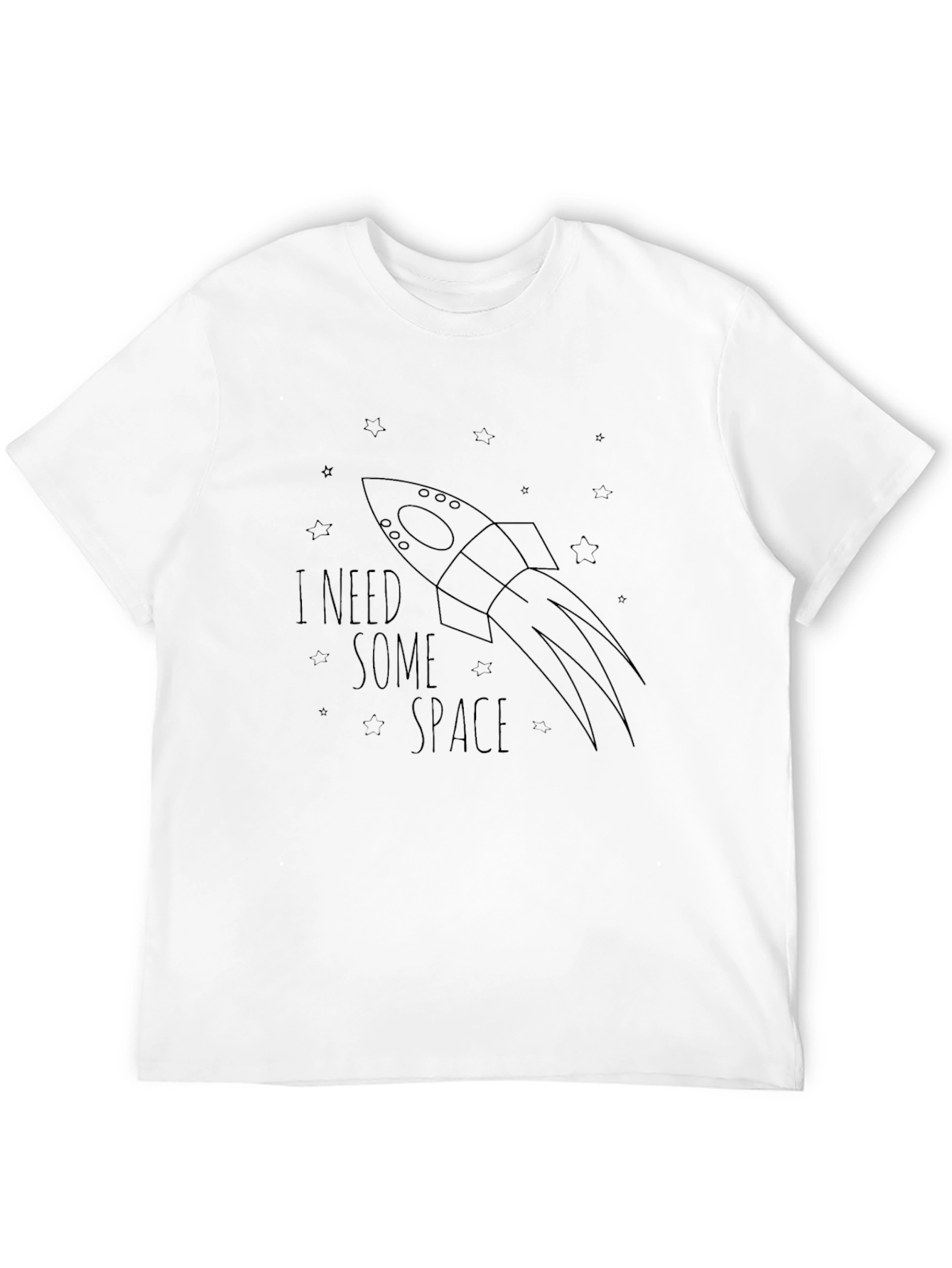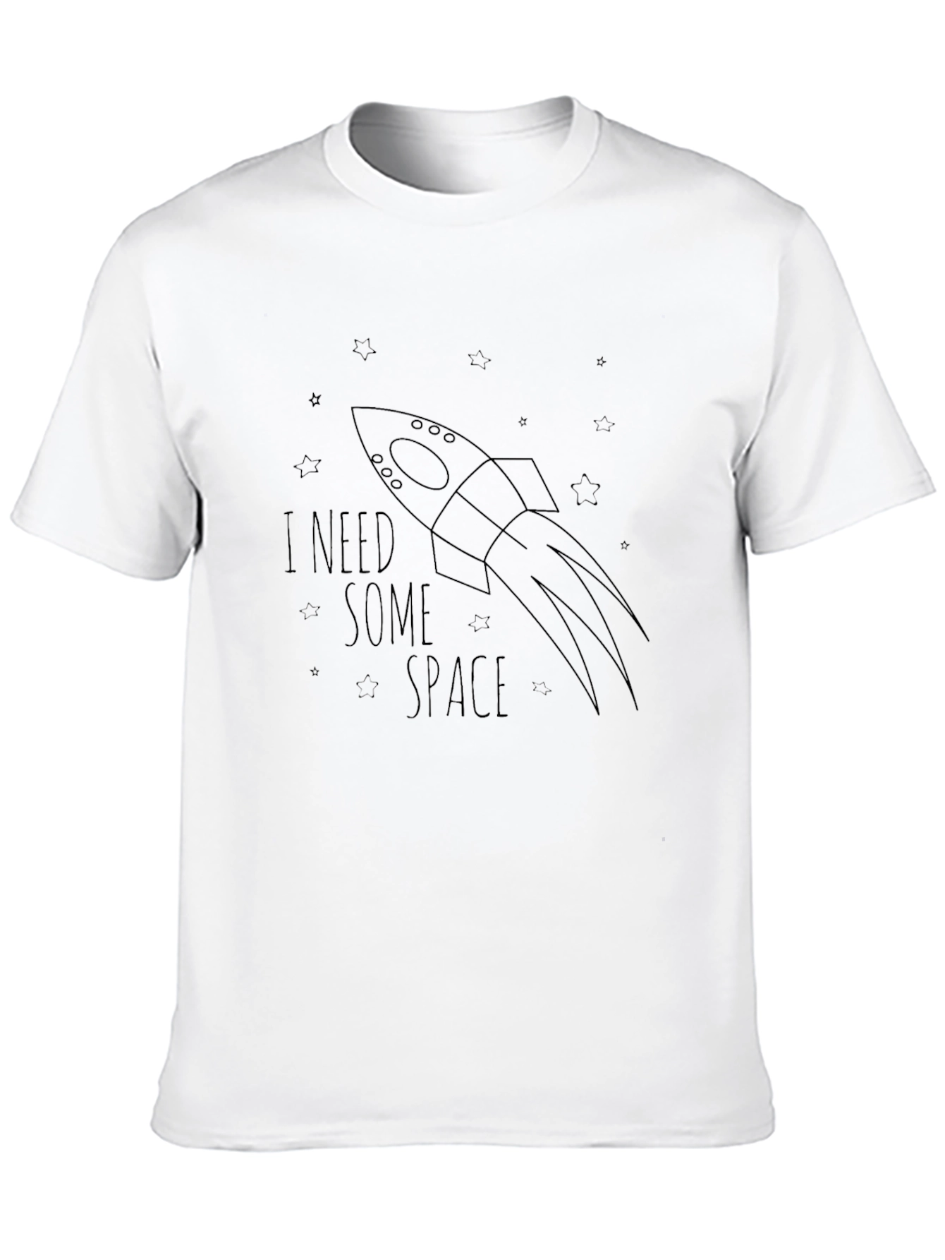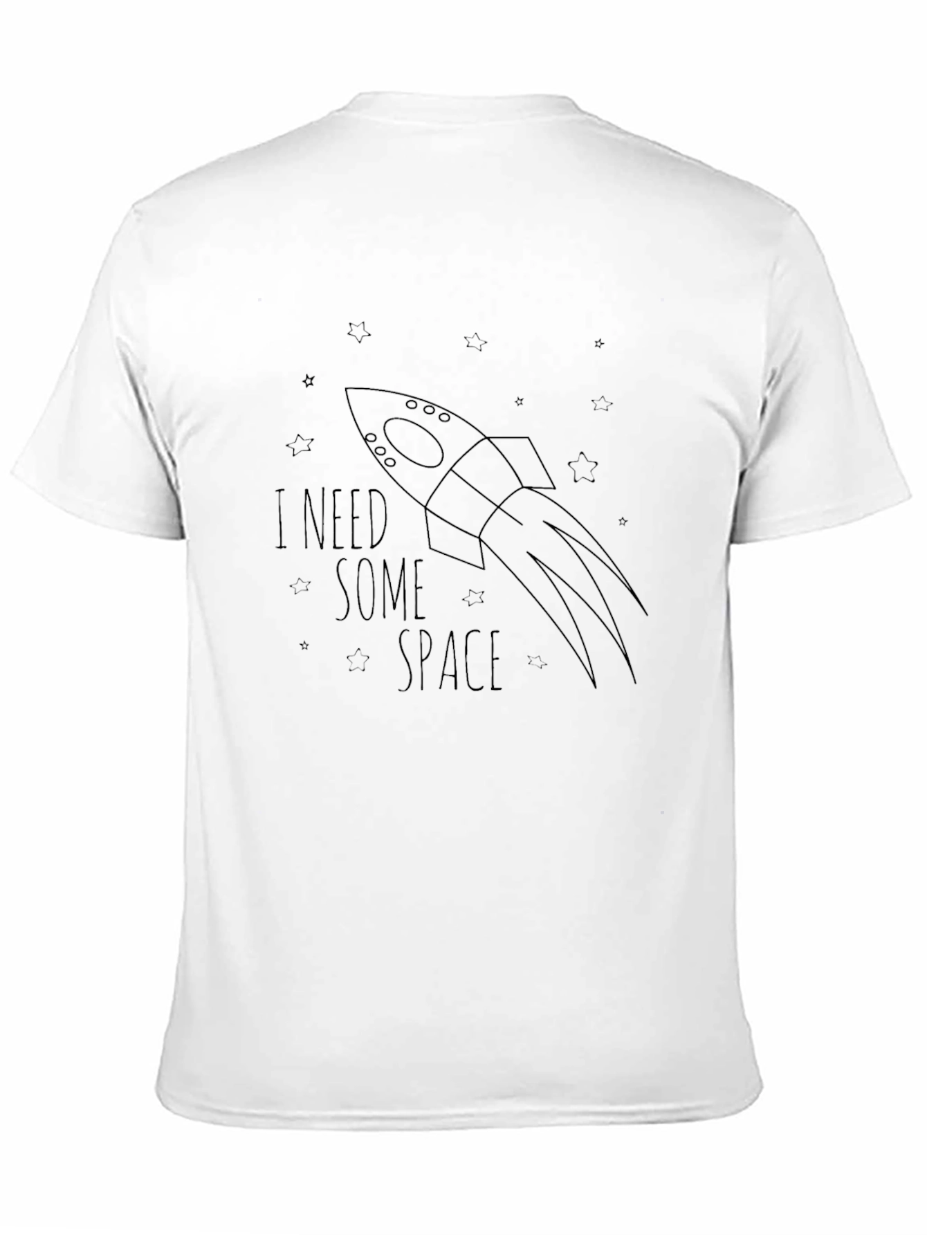 This stylish black t-shirt features a minimalist graphic design of a rocket ship surrounded by stars. The phrase "I NEED SOME SPACE" is printed below the rocket, adding a touch of humor and personality. Made from a soft and comfortable cotton fabric, this tee is perfect for everyday wear. The classic crew neck and short sleeves make it a versatile addition to any wardrobe. Show off your love for space and your need for a little breathing room with this unique and eye-catching t-shirt. Ideal for casual outings, lounging at home, or as a fun conversation starter. Get yours today and let your tee do the talking!
