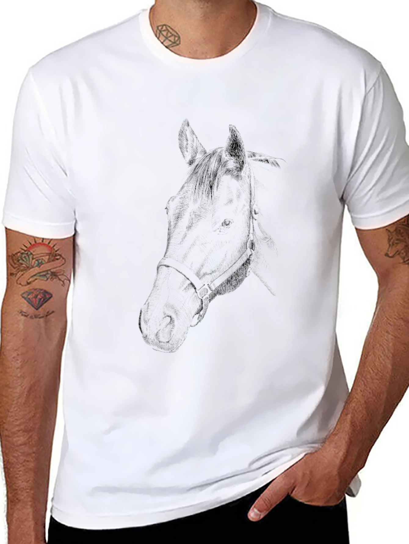 This classic men's black t-shirt features a subtle horse graphic, perfect for casual wear. The soft fabric and comfortable fit make it ideal for everyday use. The minimalist design offers a stylish look, whether you're out running errands or relaxing at home. Pair it with jeans or shorts for a versatile and effortless style. A great addition to any wardrobe.