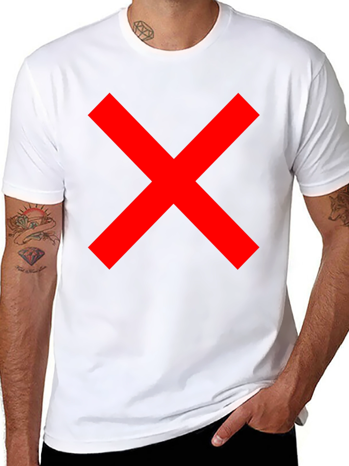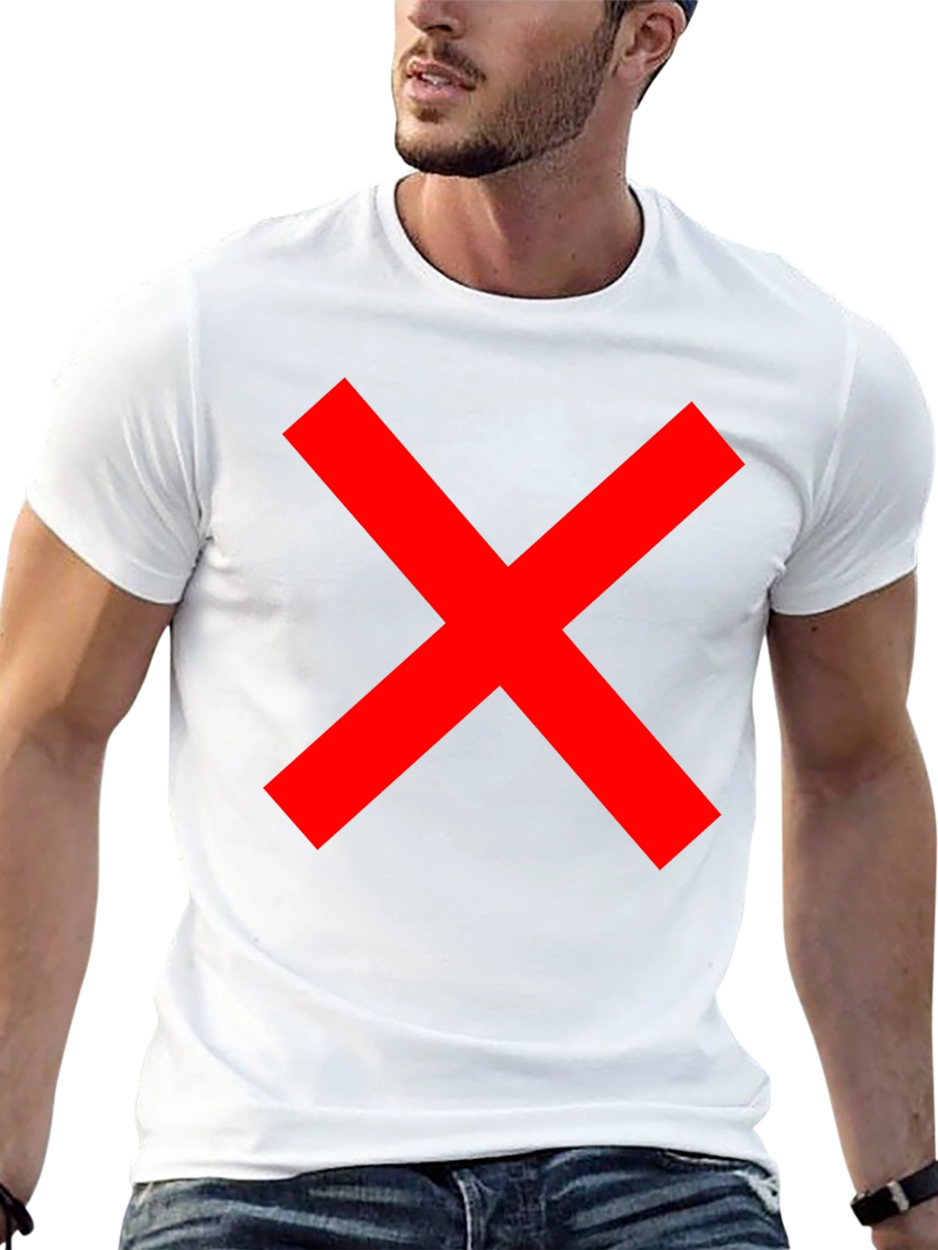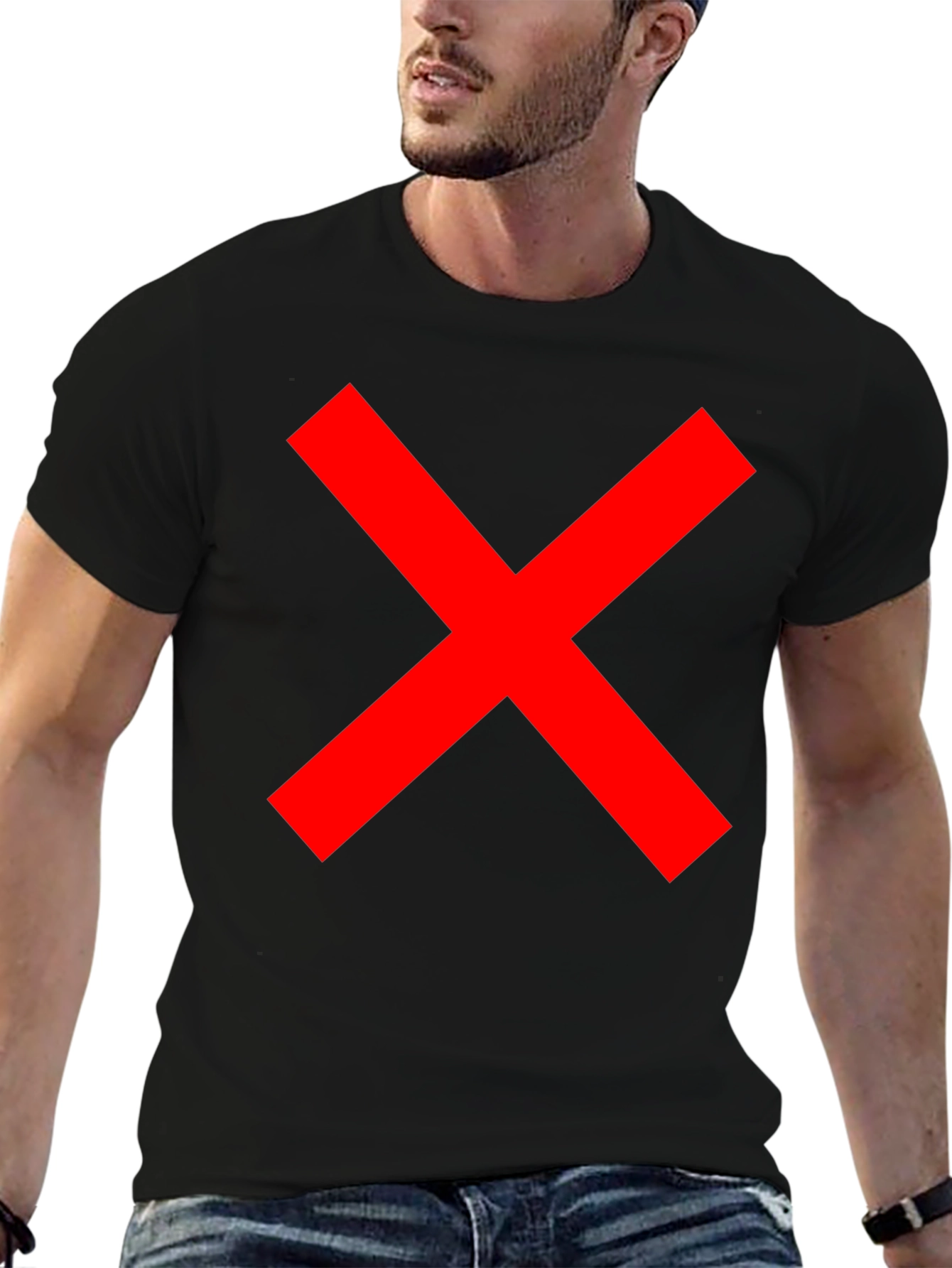 This classic men's black t-shirt features a bold, eye-catching red "X" graphic prominently displayed on the front. The shirt appears to be made of a comfortable, breathable fabric, perfect for everyday wear. The short-sleeved design and relaxed fit make it ideal for casual outings, workouts, or lounging at home. The striking graphic adds a touch of modern style, making it a versatile piece that can be paired with jeans, shorts, or layered under a jacket. Show off your unique style with this statement tee that is sure to turn heads. Grab yours today!