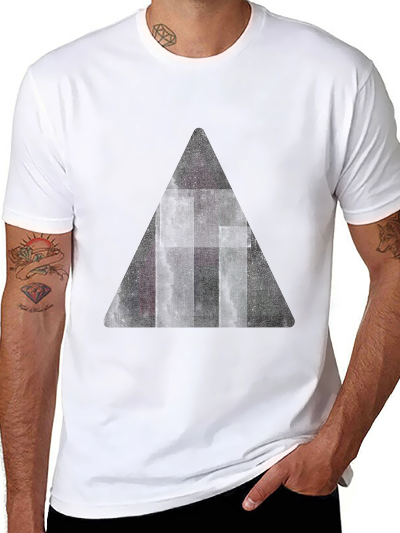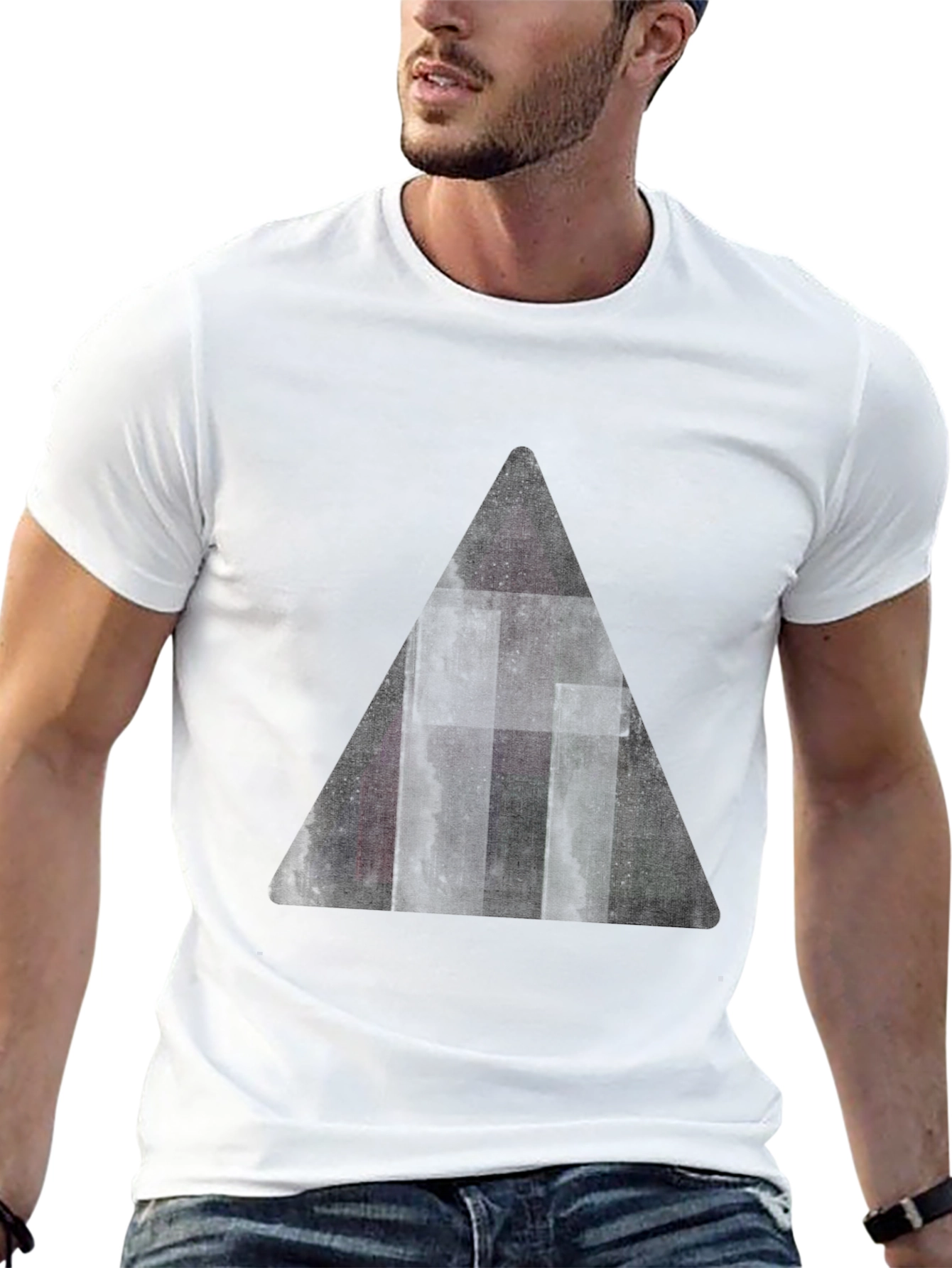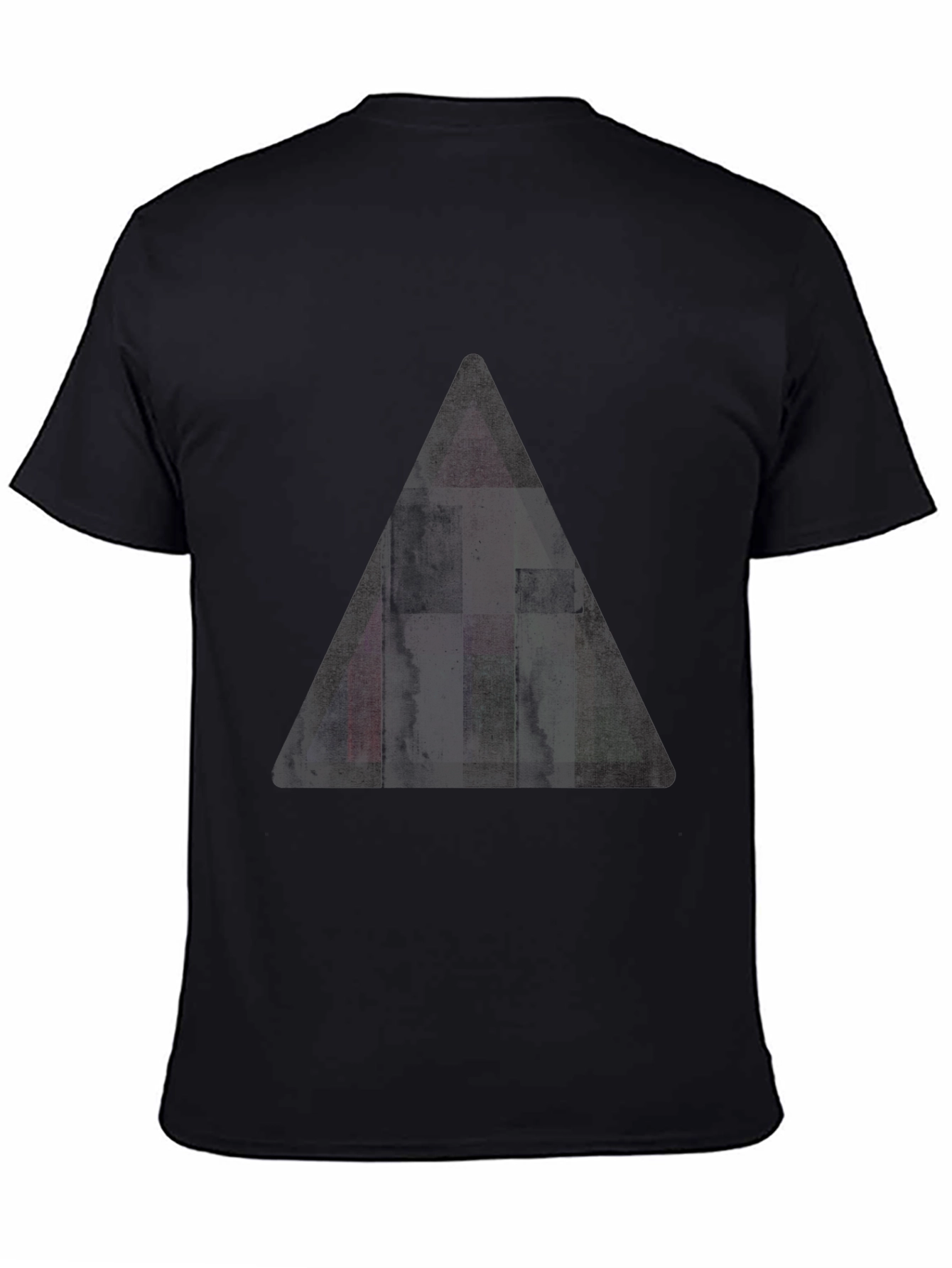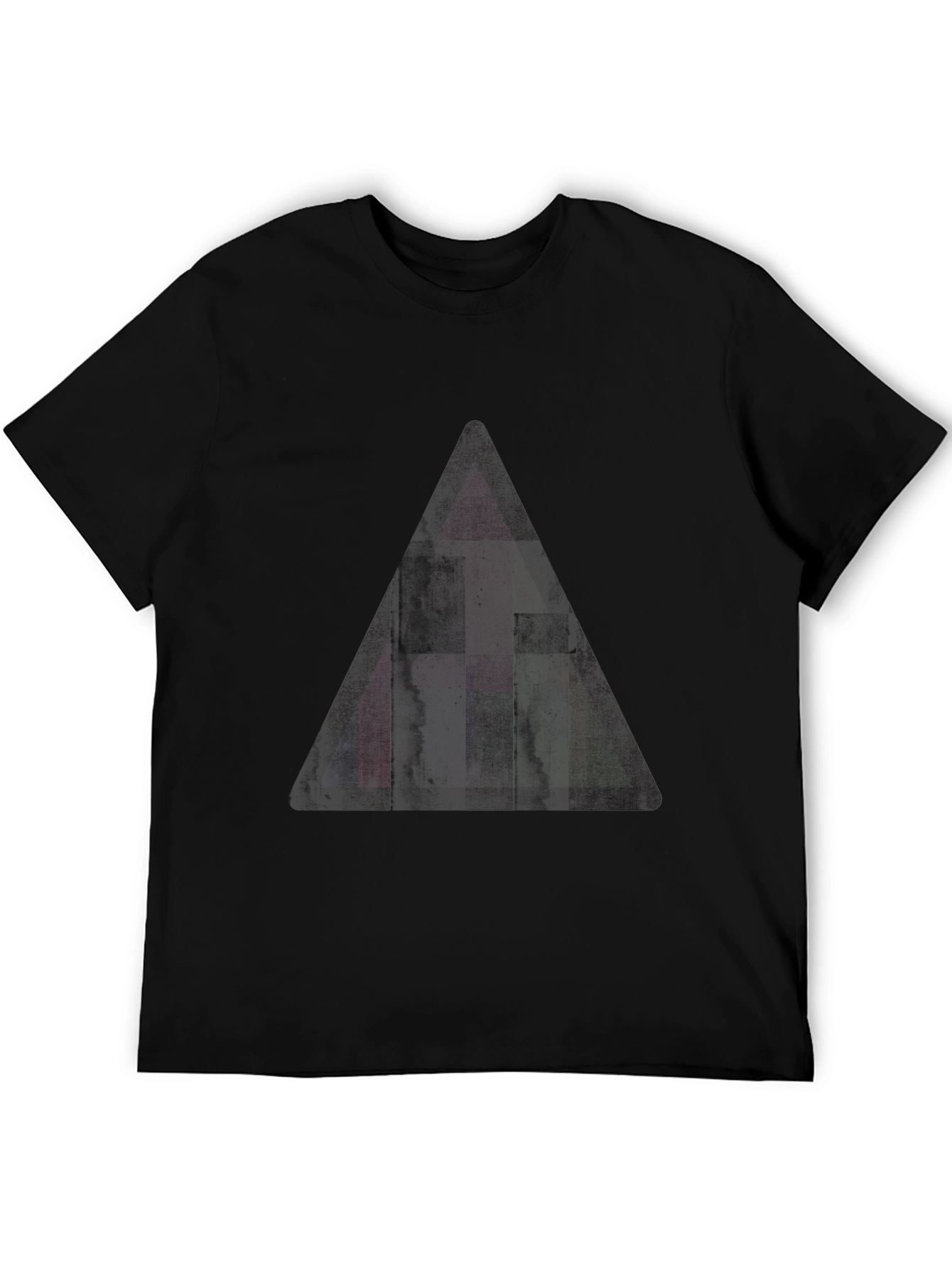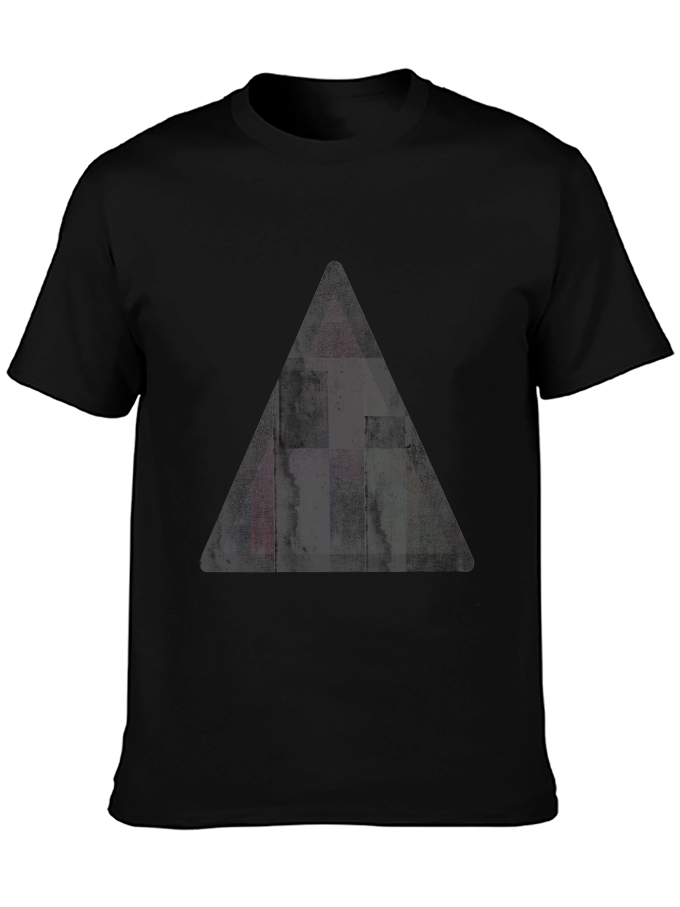 This classic black t-shirt features a modern, eye-catching triangle graphic design. The subtle color variations within the triangle add depth and visual interest. Made from a soft, comfortable fabric, this tee is perfect for everyday wear. Its versatile style makes it easy to pair with jeans, shorts, or chinos. Whether you're hitting the streets or relaxing at home, this t-shirt will keep you looking cool and stylish. A must-have addition to any casual wardrobe.