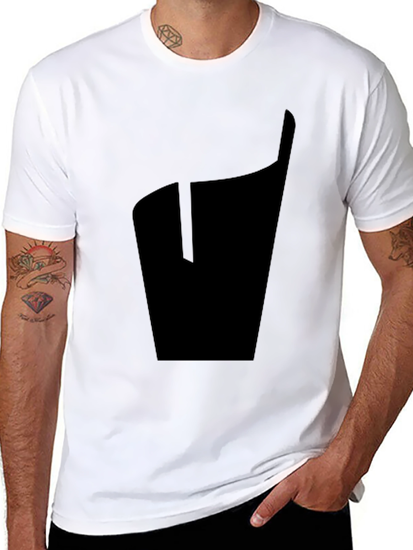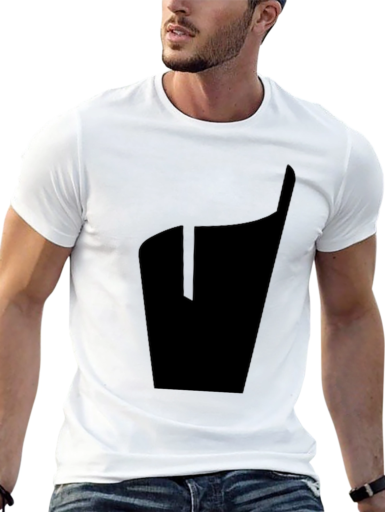 Showcase your unique style with this sleek, black graphic tee. The minimalist design features a bold, abstract shape that commands attention without being overly complex. Made from what appears to be a soft, comfortable fabric, this tee is perfect for everyday wear. The clean lines and solid color make it easy to pair with jeans, shorts, or even dress pants for a modern, casual look. Whether you're headed to a concert, a casual hangout, or simply running errands, this shirt will keep you looking sharp and feeling great. Add this statement piece to your wardrobe and elevate your style effortlessly.
