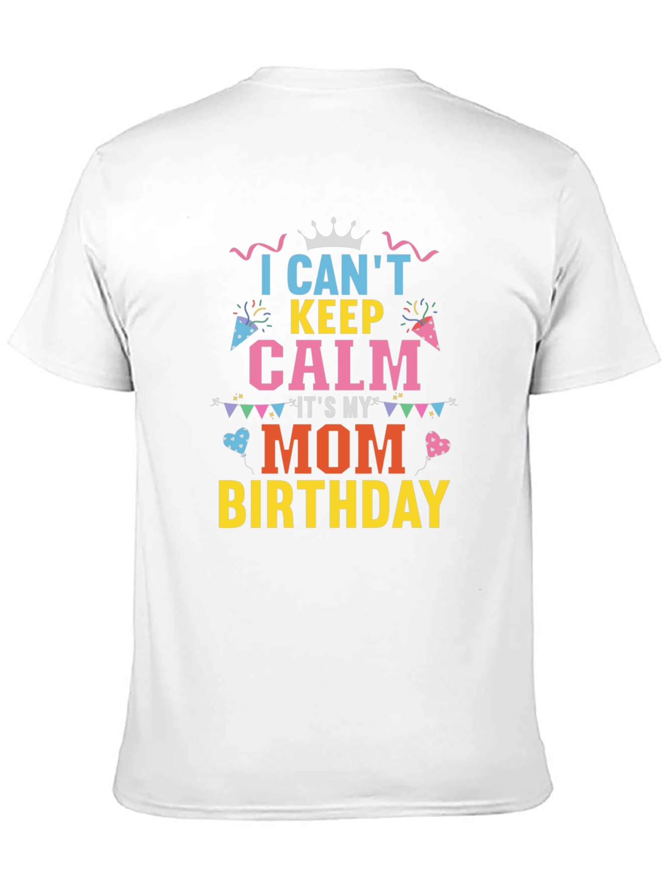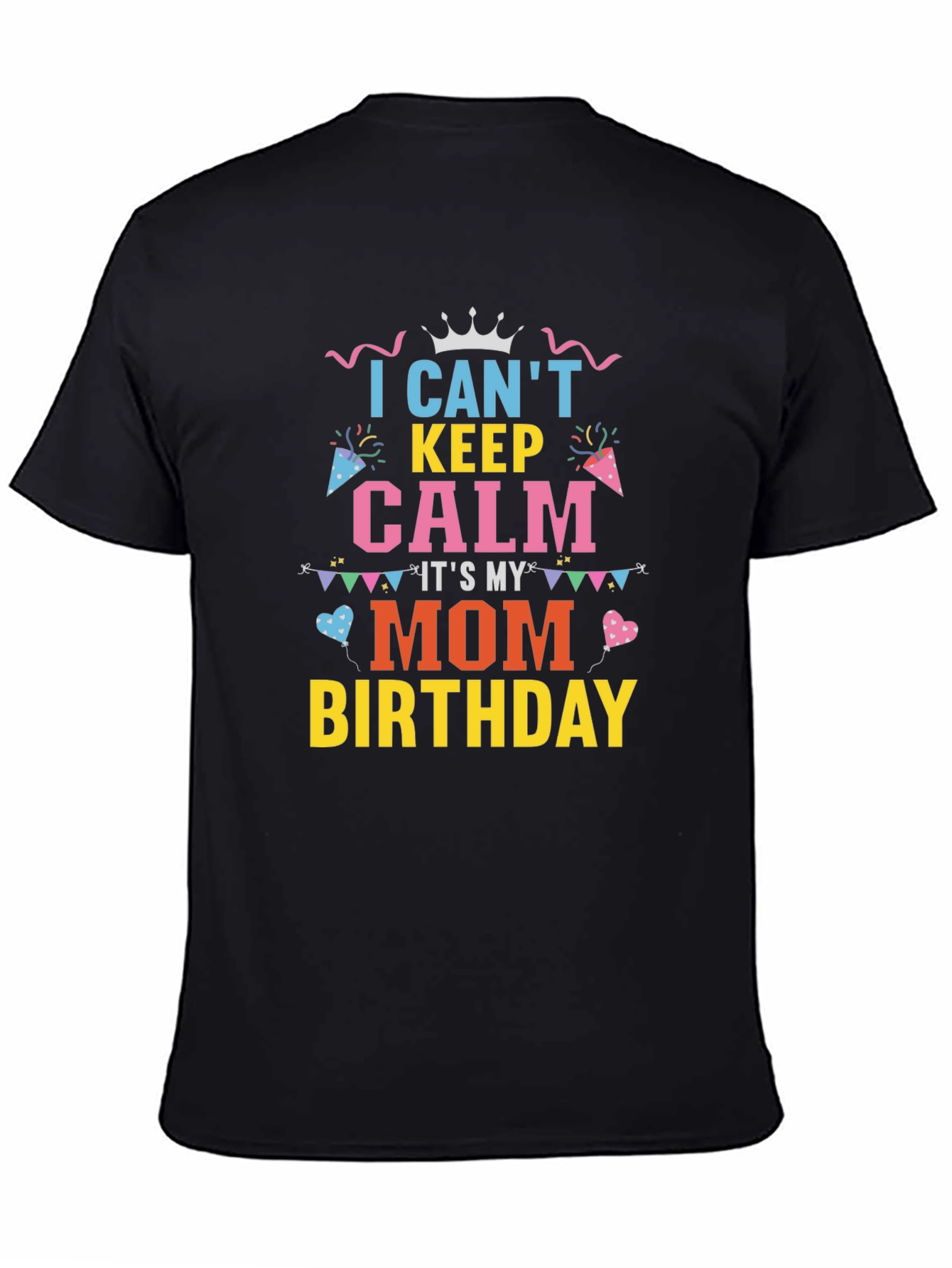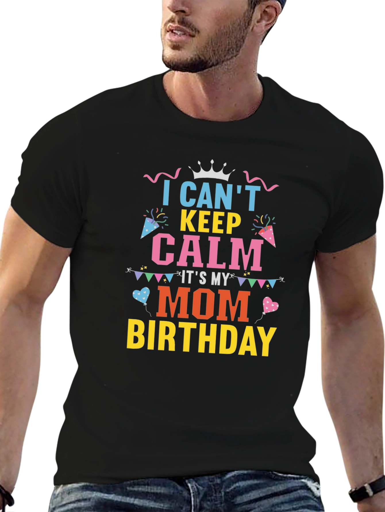 Celebrate Mom's special day with this fun and festive "I Can't Keep Calm It's My Mom's Birthday" t-shirt! This eye-catching black tee features a colorful graphic design with a crown, party hats, heart balloons and decorative banner. Perfect for wearing to a birthday party, family gathering, or as a thoughtful gift. Show your love and excitement for Mom's birthday in style. Made with comfortable fabric for all-day wear, this shirt will make the day even more special. Get yours today and make Mom feel extra loved!