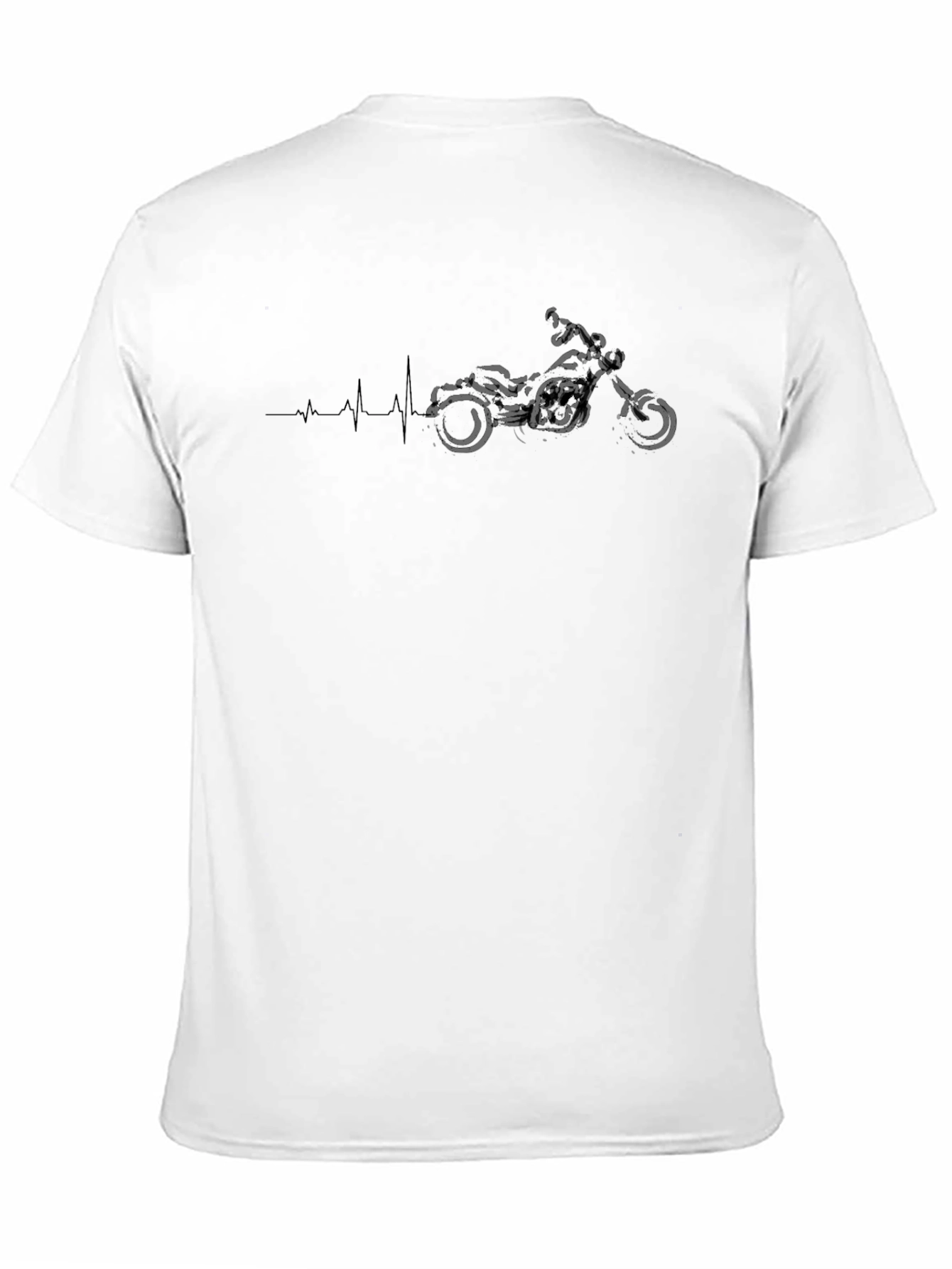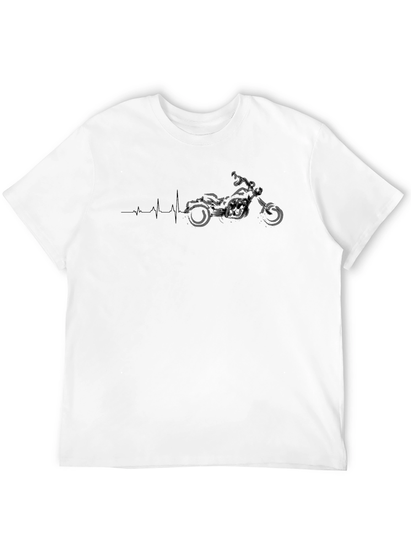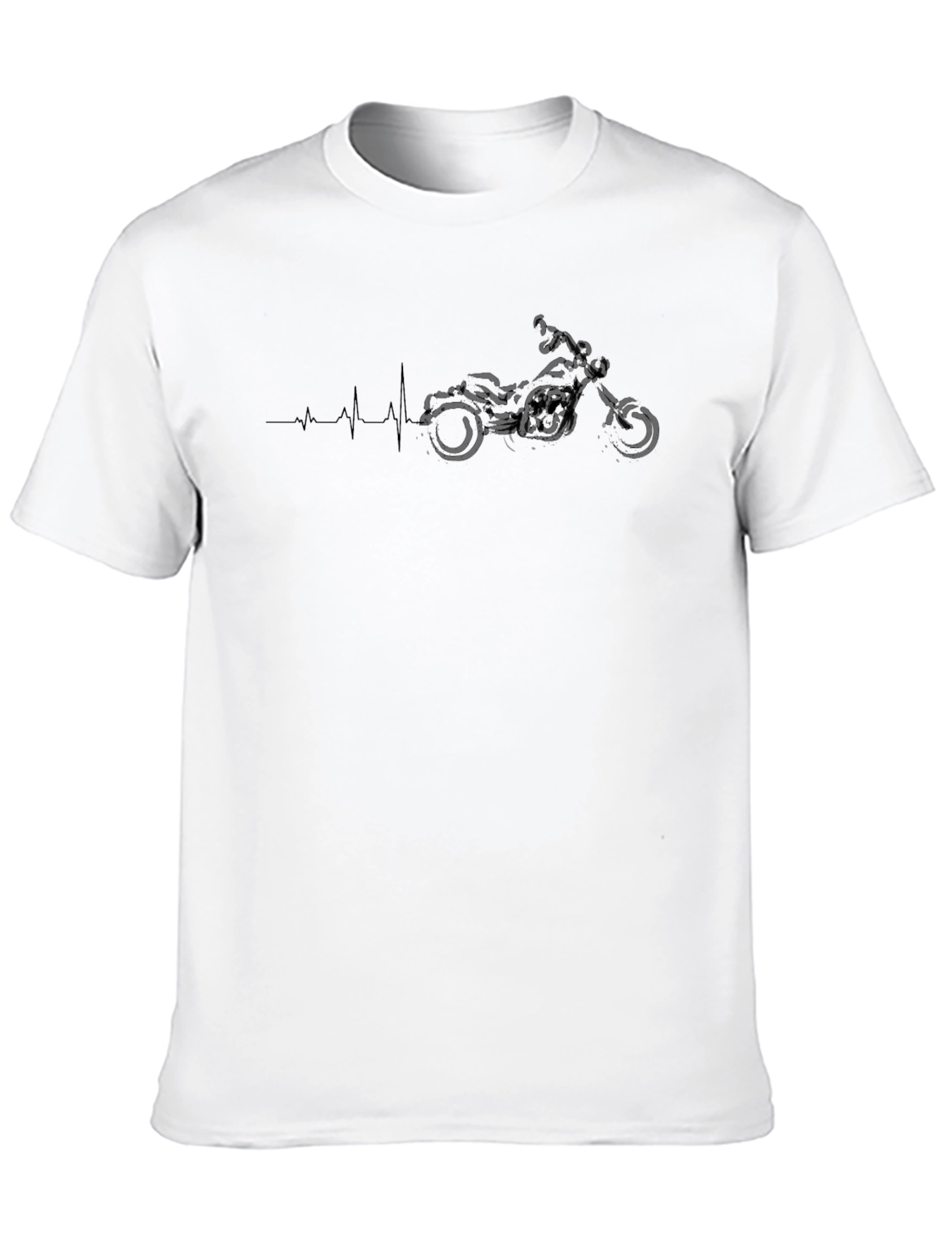Show off your passion for motorcycles with this stylish black t-shirt. This eye-catching tee features a unique design of a heartbeat transitioning into a detailed motorcycle silhouette. Made from a comfortable, breathable fabric, this shirt offers a great fit and feel. The minimalist design makes it versatile for casual wear, bike events, or everyday activities. It's perfect for motorcycle enthusiasts who want to showcase their love for riding in a subtle yet impactful way. Pair it with jeans or shorts for a cool, relaxed look. A must-have addition to any biker's wardrobe!